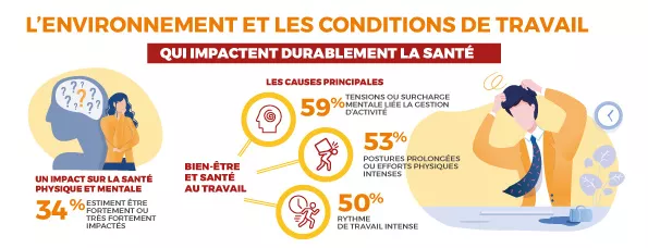 • 53 % déclarent subir des postures prolongées ou des efforts physiques intenses ;